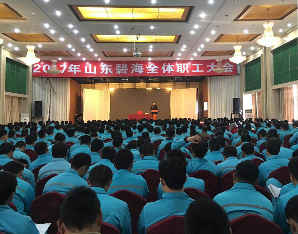 2017年2月6日上午8:30時,在綠地公館召開“2017年山東碧海全體職工大會”,這是公司全體職工,“統(tǒng)一思想、統(tǒng)一行為、統(tǒng)一結(jié)果”的大會,是充滿激情,斗志昂揚,團結(jié)奮進的大會。
