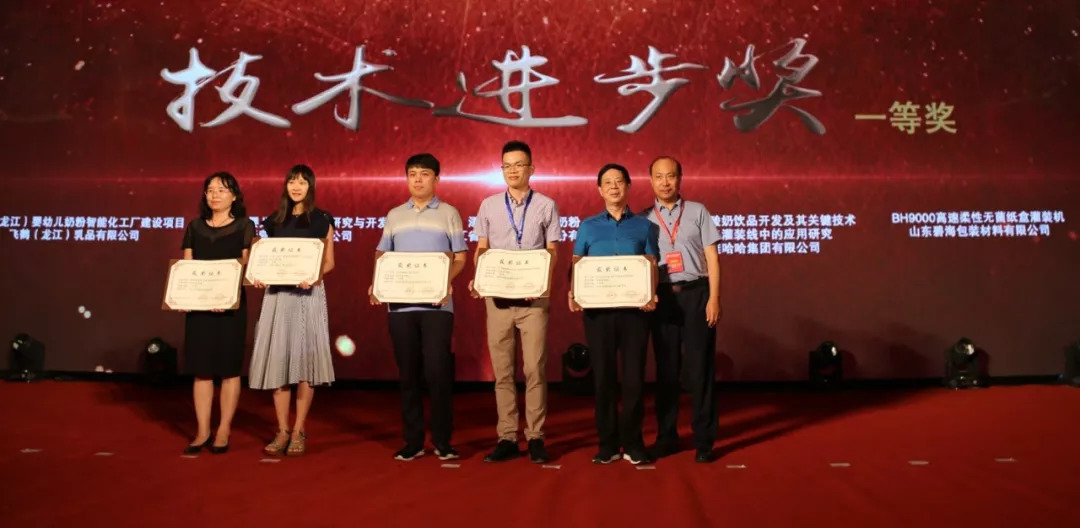 8月25日晚,2018年度中國乳制品工業(yè)協(xié)會系列頒獎典禮在西安曲江國際會議中心隆重舉行。山東碧海包裝材料有限公司制造的BH9000高速柔性無菌紙盒灌裝機榮獲技術(shù)進步獎一等獎!